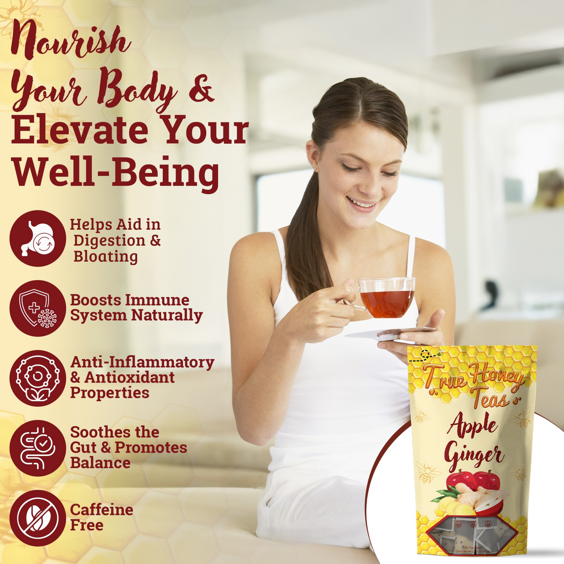 This warming Apple Ginger Spice blend marries crisp apple notes with a kick of fresh ginger and aromatic spices like cinnamon and clove. Our signature honey infusion enhances the natural sweetness, creating a cozy, comforting flavor profile. Perfect for chilly mornings or cozy nights, it’s a delightful twist on classic fall-inspired chai.