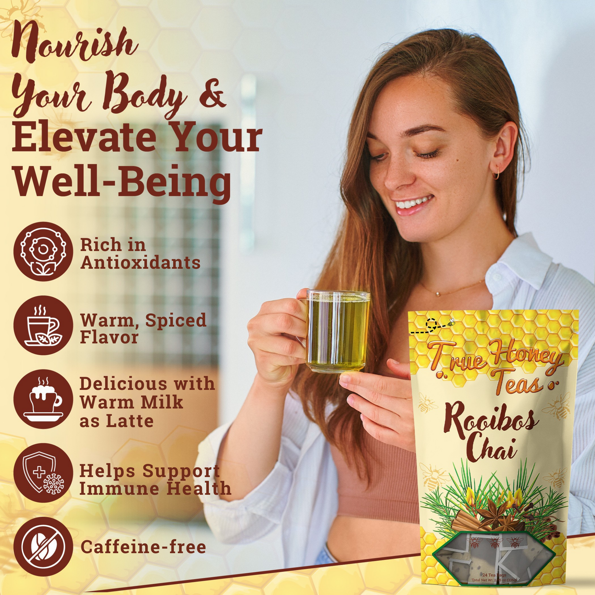 This caffeine-free chai blends smooth rooibos with warming spices like cinnamon, ginger, and cardamom. Naturally sweet and earthy, it’s a comforting cup any time of day. Cozy up with bold flavor and a gentle finish.